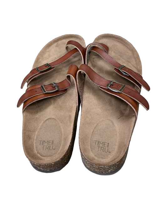Sandals Flats By Time And Tru In Brown, Size:10